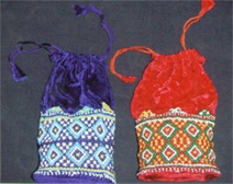 Stylized human figures, geometrical designs, glimpses of daily life, horse and camel riders, elephant with haudha, horse with carriage, the famous love legend of local hero Dhola and his lover Maru are the designs repeatedly used. Various articles like, Purse, cap, toran. play articles, cradle decoration, showpieces are prepared by Moti Bhat.