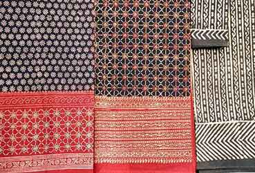 Design including square shape is most demanded and peculiar in itself. The resistant used also has a effect on the designs and patterns. The barmer prints are not used much for dress material but for furnishings. The bedsheets and bedspreads from Barmer are very famous and have a great market demand in and outside India. The use of cotton cloth as the base for dyeing makes these bedsheets more special.