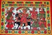 The Bhopas use paintings as visual aids while singing and dancing to illustrate the legend of their hero Pabuji.These paintings have very strong religious and community connotations.