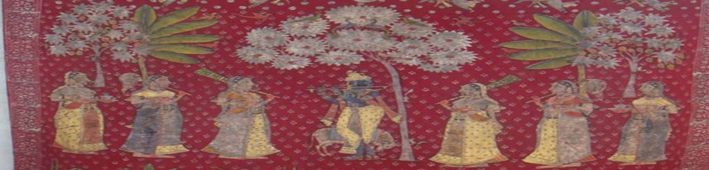 Pichhwais represent a unique form of textile art which originated at Shrinathji temple in Nathdwara a little over three centuries ago. Nathdwara is some 48 km northeast of Udaipur in the Rajsamand district of Rajasthan.The temple dedicated to Lord Krishna was named Nathdwara because Lord Krishna is also known as ‘Nath’ and ‘Nathdwara’ means ‘Gateway to God.’